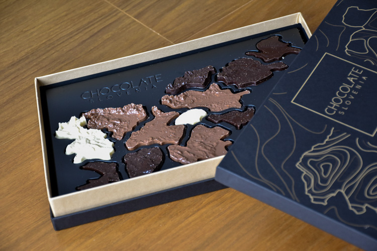 Čokoladna Slovenija! Mogoče že res drži, da je življenje kot bonboniera, kjer nikoli ne veš kaj dobiš – vendar v tej se skrivajo nadvse zanimivi okusi, ki vas ne bodo razočarali. 12 koščkov bele, temne ali mlečne, z 12 različnimi dodatki kar predstavlja 12 regij naše male super državice. Ja… raznolikost Slovenije zapakirana v inovativno škatlo čokolade!