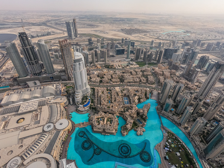 Pustimo preteklost in se raje posvetimo sedanjosti – modernemu Downtownu, predelu z Burj Khalifo, nebotičnikom, ki se lahko pohvali z več kot 800 metri višine in Dubai Mall-om, nakupovalnim centrom v katerem je več kot 1.300 trgovin, drsališče in celo ogromen akvarij! Gre za dve glavni znamenitosti mesta, med katerima se nahajajo še plešoče fontane, ki pa do pravega izraza pridejo šele, ko pade mrak. V kolikor vas zanima kako Dubaj izgleda iz zraka, vam tokrat ni potrebno na pregrešno drago vožnjo s helikopterjem, temveč se za približno 35 evrov (140 AED) z dvigalom v samo eni minuti povzpnete na Burj Khalifo. Razgledna ploščad se nahaja na 124 nadstropju oziroma kar 452 metrov nad Dubajem! Noro!